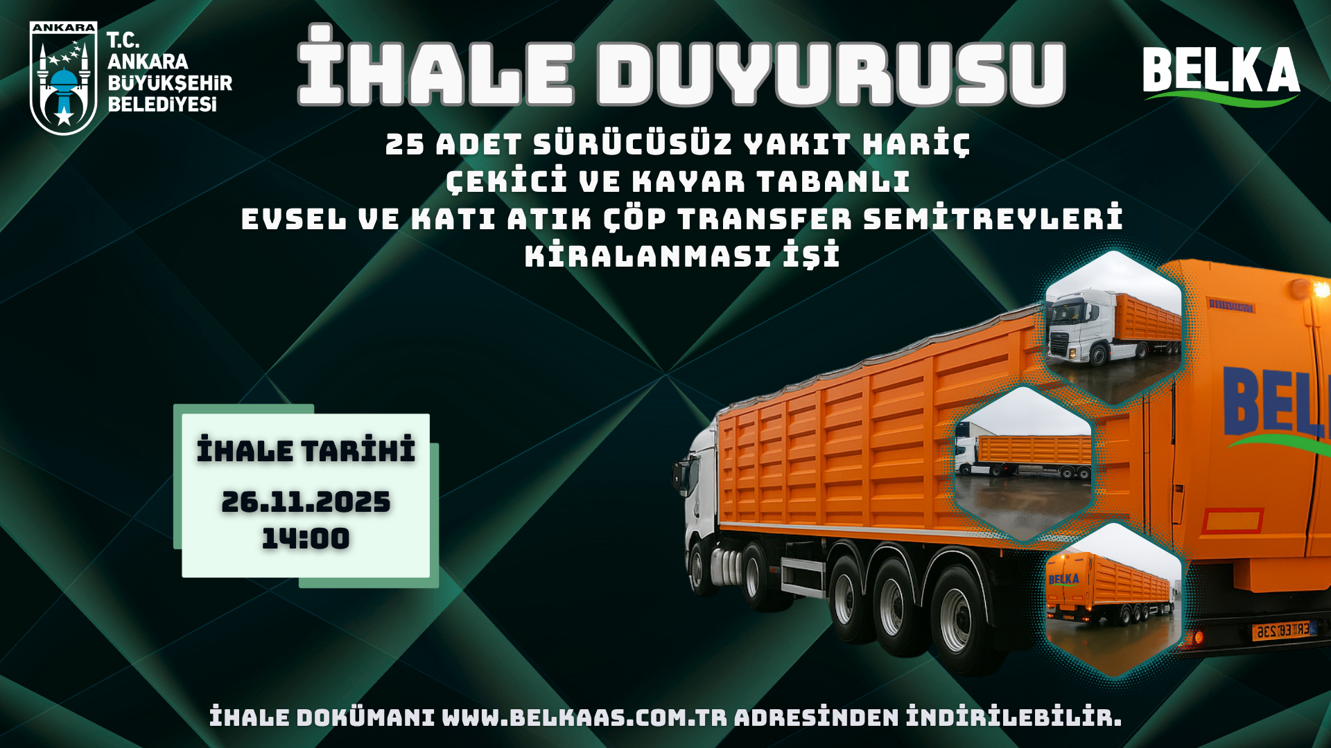 25 Adet Sürücüsüz Yakıt Hariç Çekici ve Kayar Tabanlı Evsel ve Katı Atık Çöp Transfer Semitreyleri Kiralanması İşi